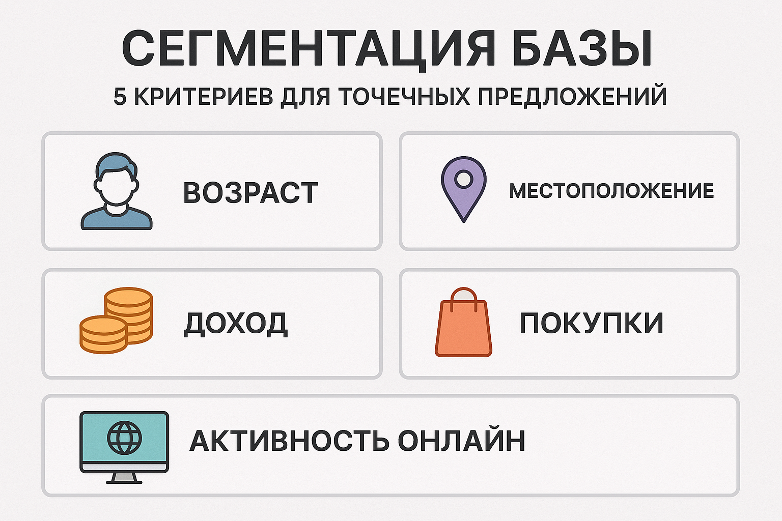 Сегментация базы: 5 критериев для точечных предложений